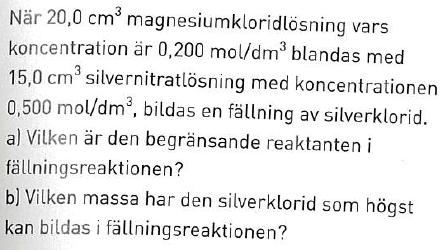Alltså är AgNO3 den begränsande reaktanten på grund av att den har mindre substansmängd --> tar slut först.