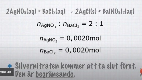 Här förstår jag inte riktigt varför AgNO3 kommer vara begränsad, om det är lika mycket varför kommer då AgNO3 ta slut först?
