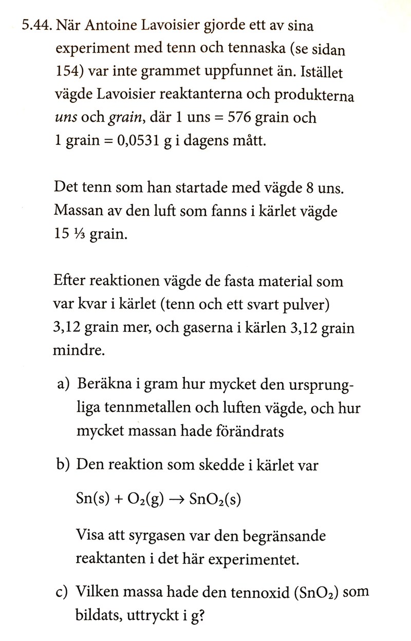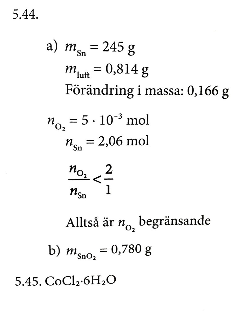 Har fastnat helt i fråga 5.44 i boken Kemi 1(2016) av Magnus Ehinger.