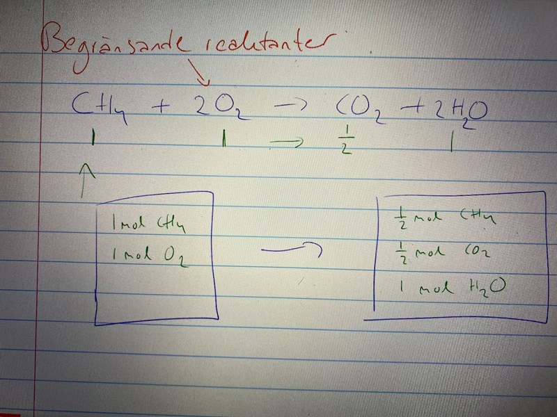 Kan jag få förklaring till hur man räknar antal mol? Samt vad betyder det begränsande reaktant