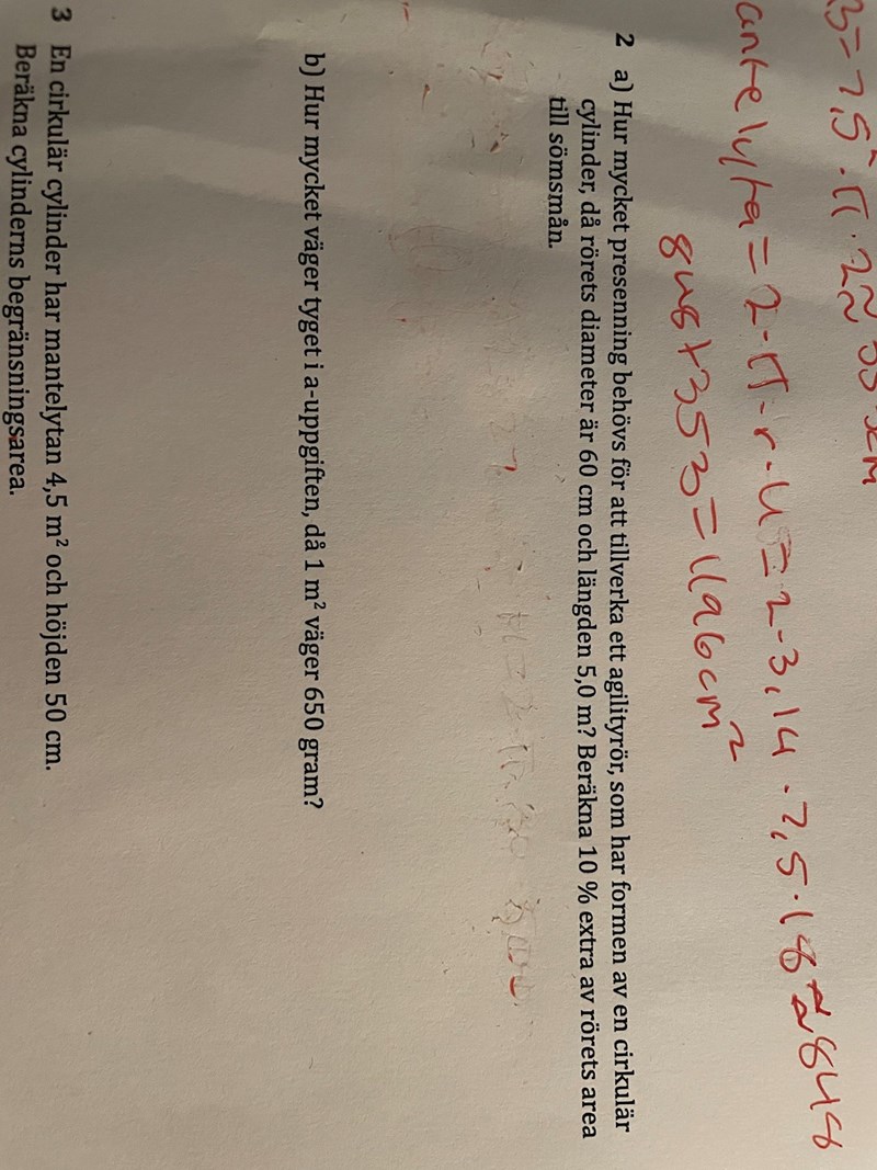Hej! Har problem med att förstå uppgiften nedan, har testat genom att räkna ut både mantel- samt bottenyta på röret men borde man inte få veta tjockleken på röret och därefter också diameter på hela så man kan räkna inre och ytrre? Eller tänker jag fel