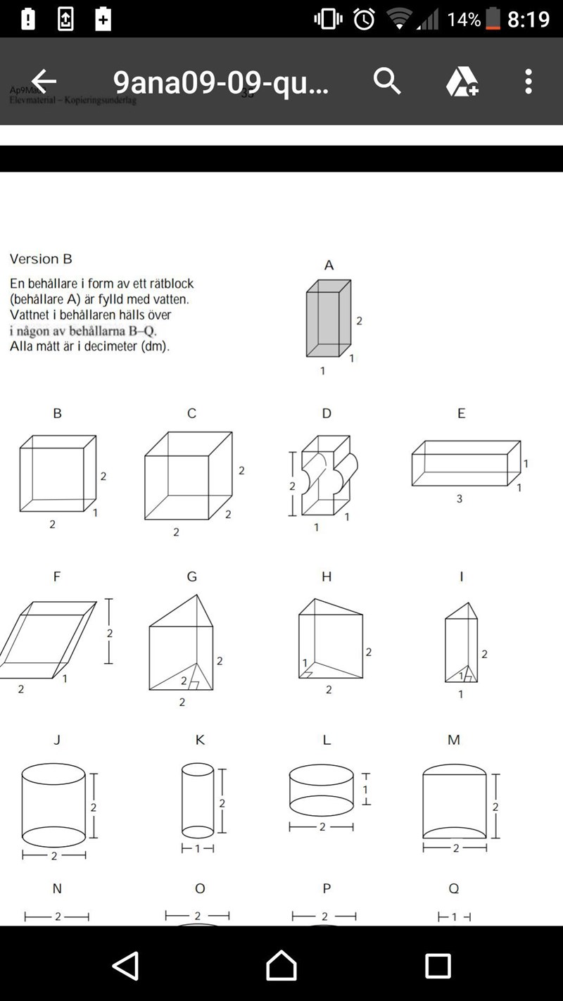 Yngve skrev :Behållare A rymmer (1 dm * 1 dm * 2 dm)
