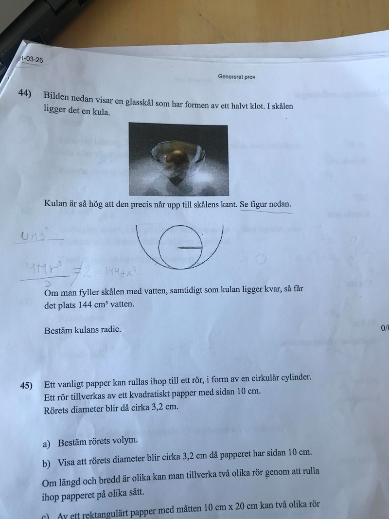 Fråga 44 jag har försökt lösa den ska infoga min uträkning
