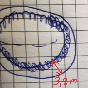 Antag att en lina binds, åtsittande, runt jorden (jordens radie är ungefär 6400km). Antag sedan att lina klipps upp och linans längd utökas med 20 meter. Den sätts tillbaka runt planeten så att linan överallt har samma avstånd till jordytan. Kan en människa gå rak och passera under linan?