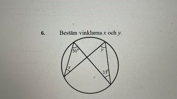 Ja, vinkeln y står ju på samma båge som den vinkel som är 56o (bågen längst ner) och likadant med vinkeln x och den som är 33o (bågen högst upp).