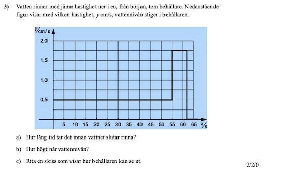 Kan du läsa av diagrammet? Om jag frågar hur fort vattennivån steg efter 50 sekunder, vad svarar du då?