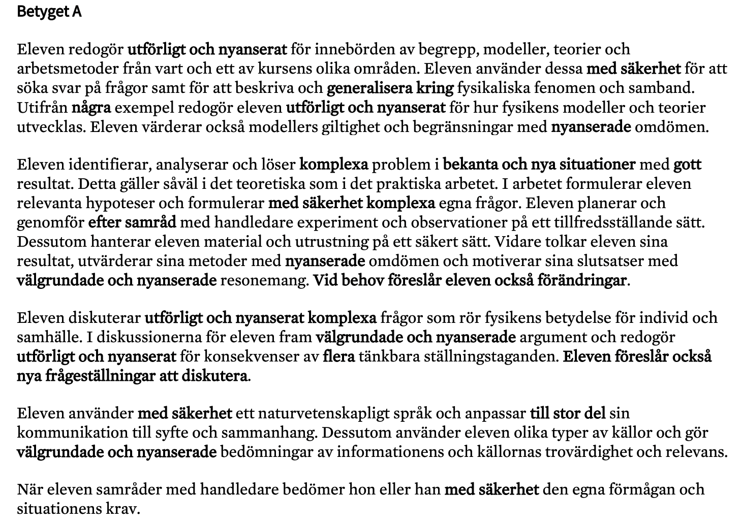 De kraven är typ copy-pasteade i alla ämnen. Och lärarnas förmåga att konkretisera dem skiljer sig rejält från ämne till ämne. Så det är som du säger: ”i teorin..”