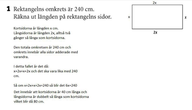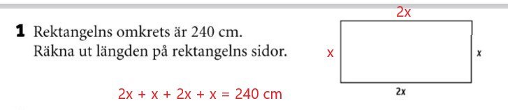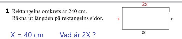Nu när du vet X kan du räkna ut hur långa sidorna är i rektangeln.
