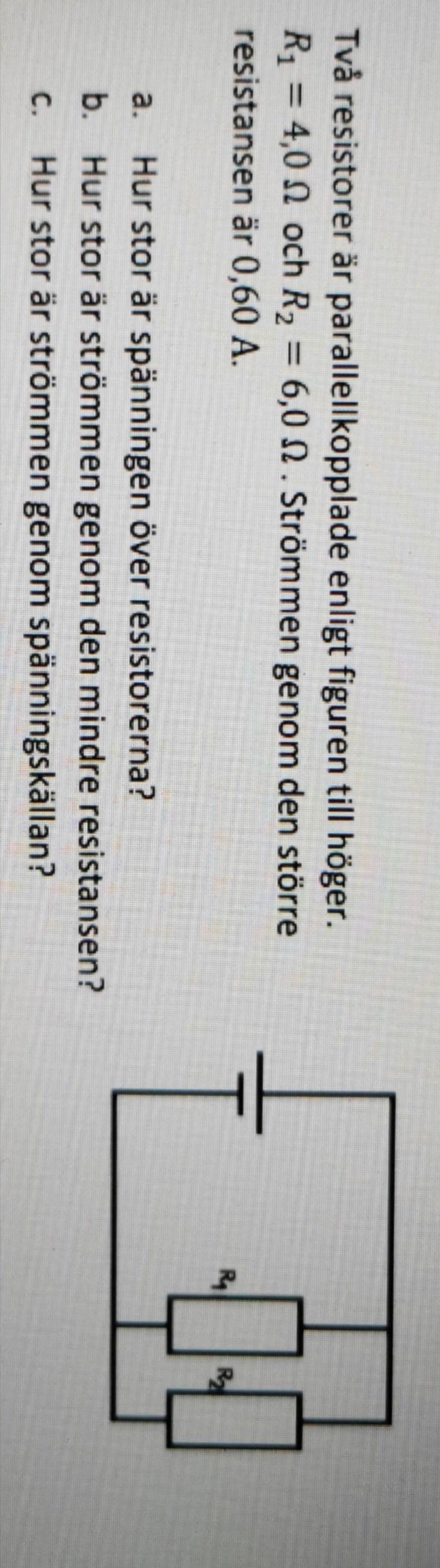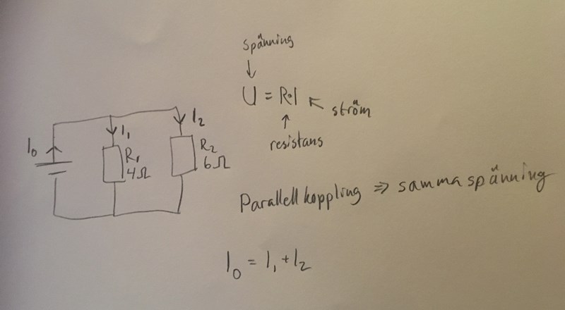 Micimacko skrev:Den totala strömmen är I0. Använd alla formler och se vad du kan räkna ut först.