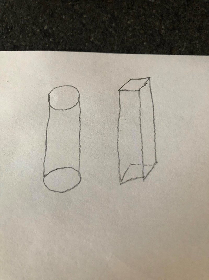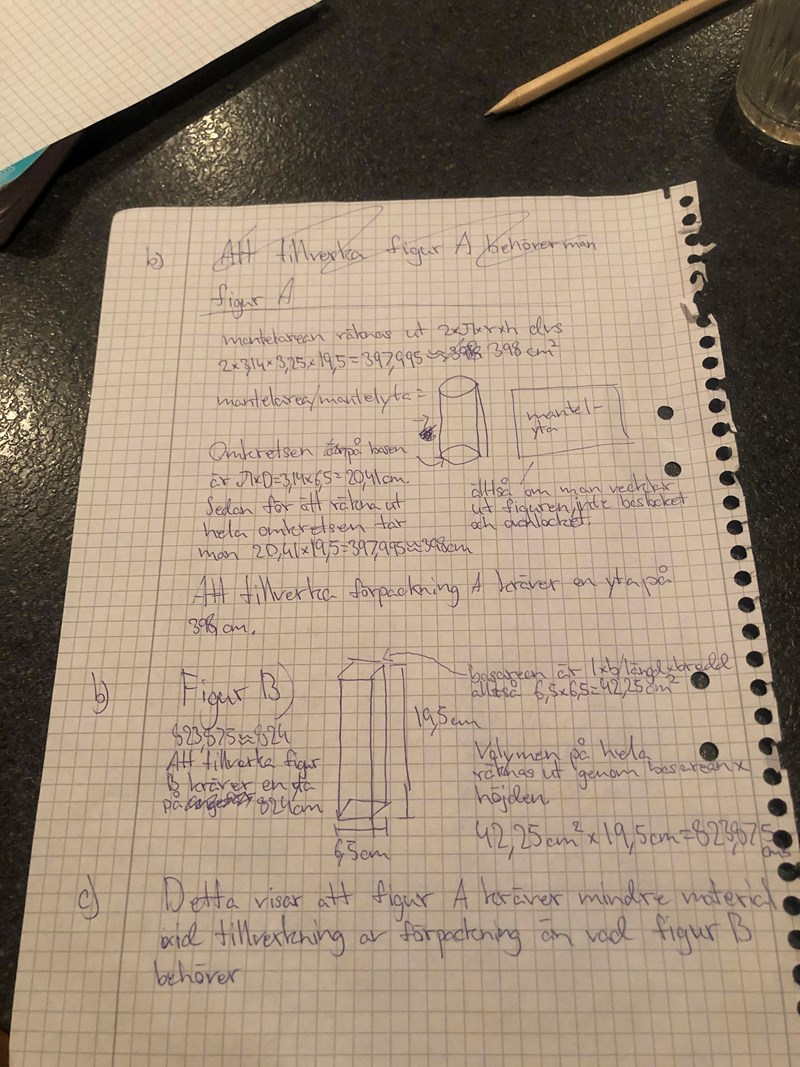 Man ska då fördjupa sig och göra beräkningar för två former, där har jag valt cylinder och rätblock. Konexemplaret var bara ett tredje exempel på en förpackning.