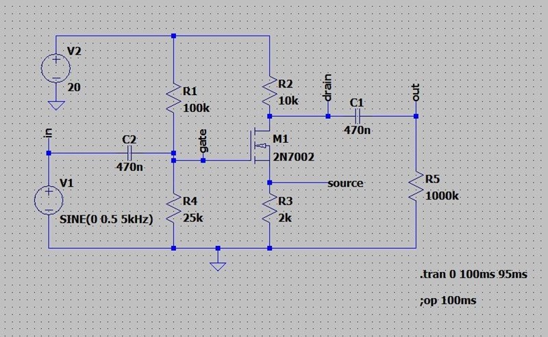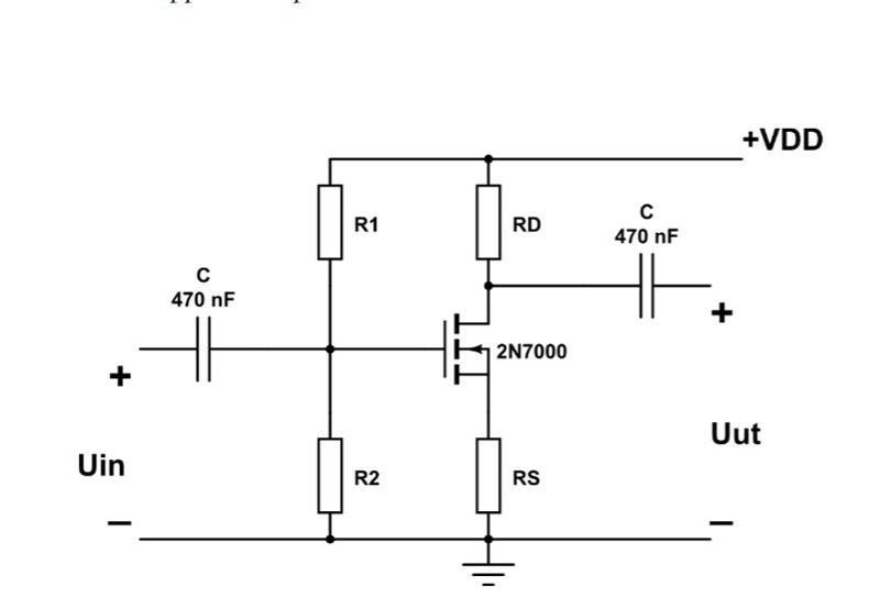 Transistorns gate-source spänning är konstant (2-3volt) så insignalamplituden Uin kommer även att dyka upp över RS. Du får alltså en växelströmskomponent genom RS. Samma växelströmskomponent går genom RD.