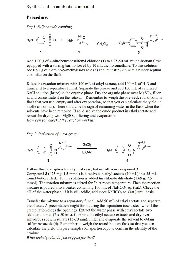 Denna instruktion är skriven så att en student på din kurs skall kunna klara av den. Och laborationen, med dess steg är optimerad så att resultatet skall kunna fås. Därför påstod jag att extraktionen var optimerad för att rena upp produkten av den första reaktionen, så att det finns material (produkten) att använda i nästa reaktion.
