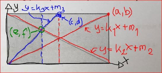 - Bestämma e och f (det är skärningspunkten mellan den blå linjen och en av de röda linjerna, även här är a och b med).