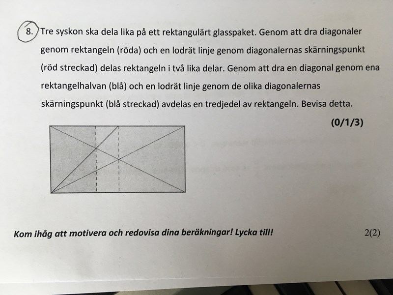 hjalphjalp skrev :Denna uträkning bevisar ju inte att den blå streckade motsvarar en tredjedel av glasspaketet?