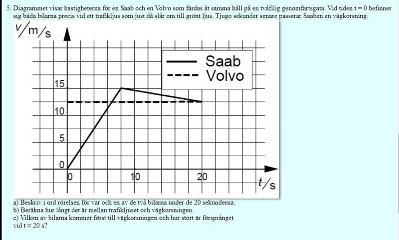 Behöver hjälp med c frågan. Fattar inte direkt hur jag ska få hastigheten av Saab'en eftersom accelerationen ändras