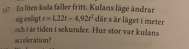 Klart är då till exempel att kulans hastighet vid t=0 är lika med 1,22 m/s.