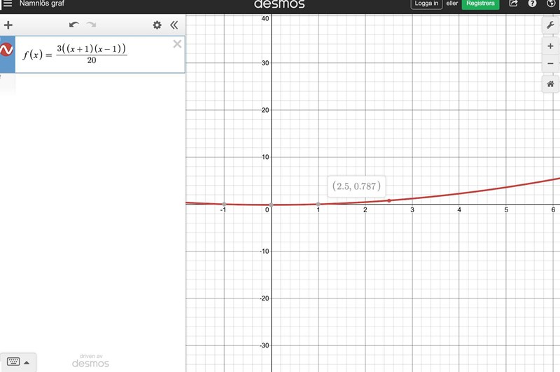 Ambi_Pluggaren skrev:Du kanske kommer ihåg normalfördelningskurvan från tidigare matte kurser. Om du kommer ihåg så har man ett medelvärde och sedan standardavvikelser. Den där funktionen som du har fått är funktionen för en normalfördelningskurva, och det område som du vill ta reda på sannolikheten av är 2,5 ända upp till 3. Genom att ta reda på arean mellan de gränserna får du ut sannolikheten att variabeln X hamnar i det området. För att räkna arean tar du integralen av funktionen mellan de gränserna, vilket enbart kan göras med miniräknaren eller för hand (utveckla paranteser). Med ”0 i övriga fall” menar man att sannolikheten att X hamnar i något område är 0. Funderingar?