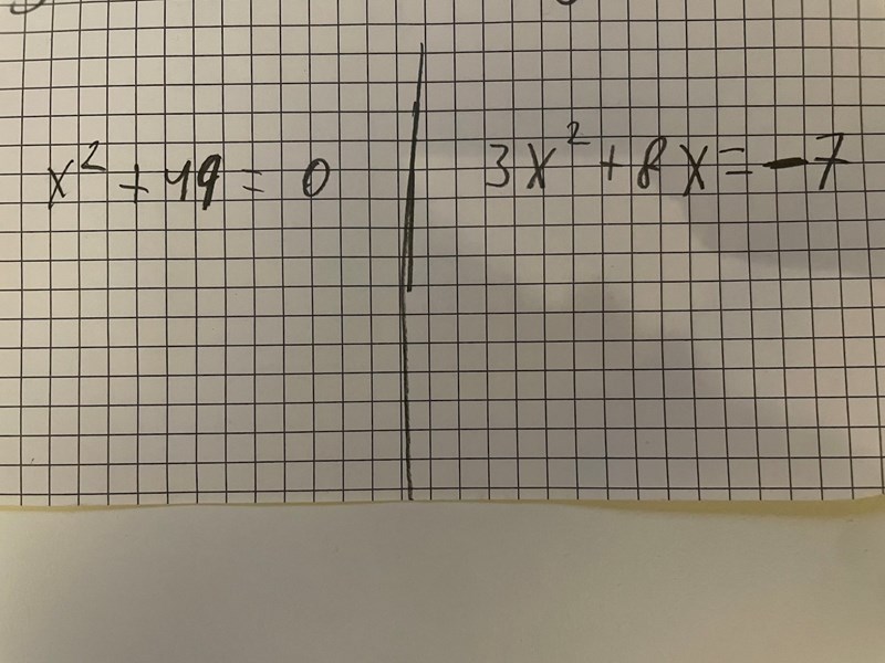 vet ju att på den vänstra så tar man bara roten ur 49 så det blir 7 så då är x1=7 och x2=-7