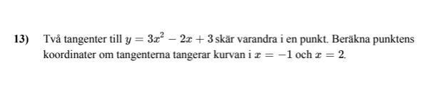Frågan: Två tangenter till skär varandra i en punkt. Beräkna punktens