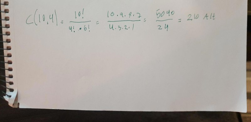 Yngve skrev:Bra, det stämmer. Du ska alltså ur en mängd med 10 element (positioner) välja ut 4 element (kryssen).