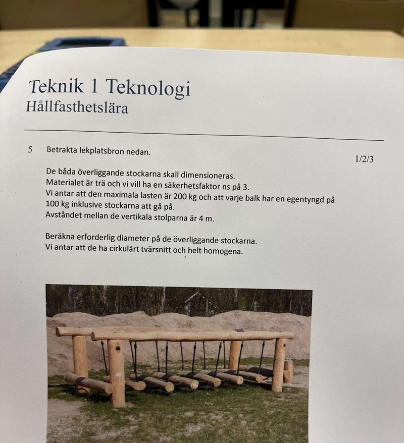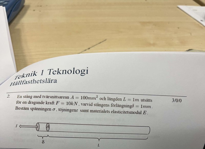 Min klass har fått 5 övningsuppgifter angående hållfasthetslära. Jag vet inte riktigt hur man ska lösa 4 av dessa. Jag vill gärna ha konkreta faktiska svar. Här kommer bilderna: