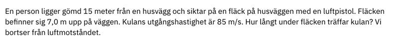 • Kan man använda t=s_x/v_x för att hastigheten i x-led är konstant, för att det finns inget som accelererar kulan mot sitt destination? Jag vet att formeln v=s/t utgår ifrån att hastigheten är konstant.