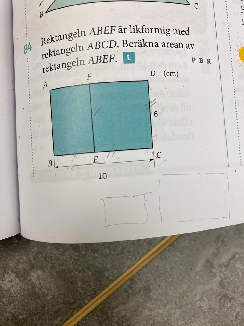 Välkommen till Pluggakuten! Hur har du börjat? Börja med att fundera över följande: Rektanglarna är likformiga, men vilka sidor i ABEF motsvarar vilka sidor i ABCD? :)