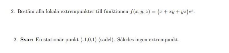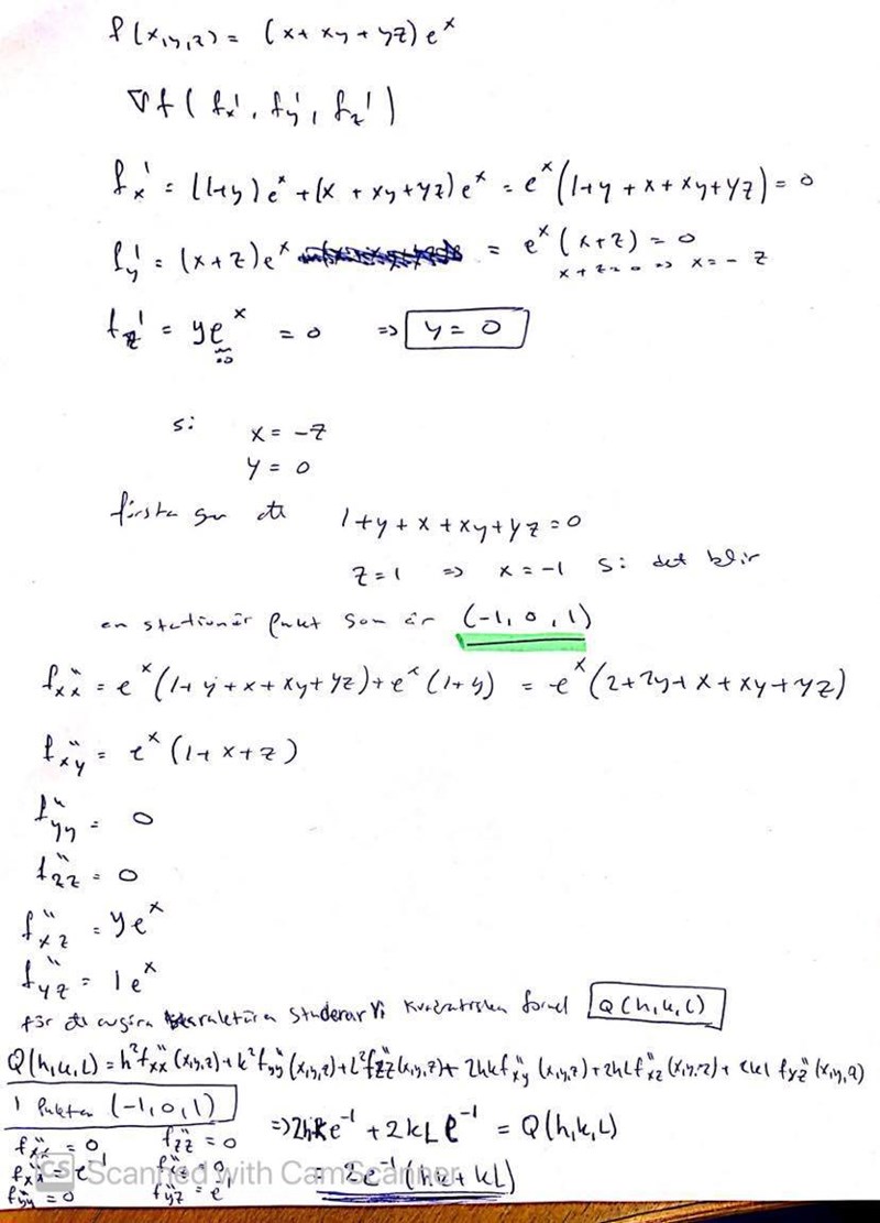 Q bör vara positiv definit och således är (-1,0,1) en minpunkt till f