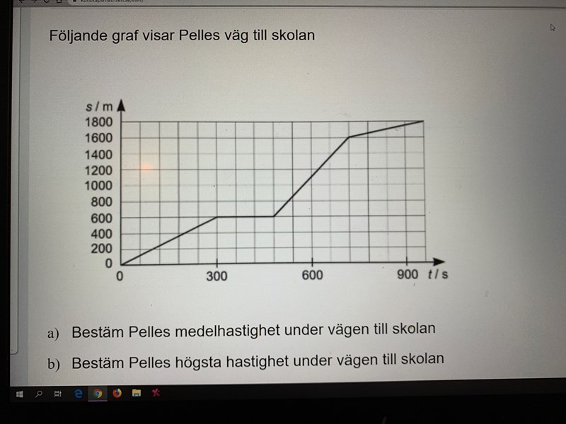 Medelhastighet = sträcka / tid. Om du använder sträckan och tiden i änden på grafen får du ut medelhastigheten för hela färden. Om du drar en rät linje från origo till änden får du även medelhastigheten representerad grafiskt.