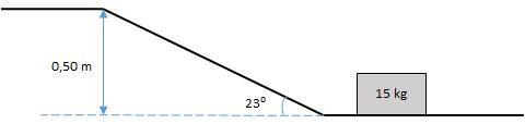Du skall putta upp en låda för en ramp genom att ge den en hastighet och därefter låta den glida uppför rampen på egen hand. Friktionstalet mellan lådan och rampen är 0,17.