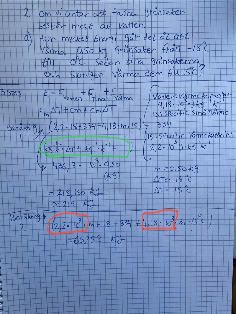 För jag tror att jag glömde en 10^3 1:a beräkningen så jag beräknande om den i steg 2 för att få med den 10^ 3 på båda och med massan. (0.50 kg).