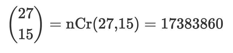 Skriver jag då bara 27 över 15 eller 27 nCr 15, om jag använder miniräknare?