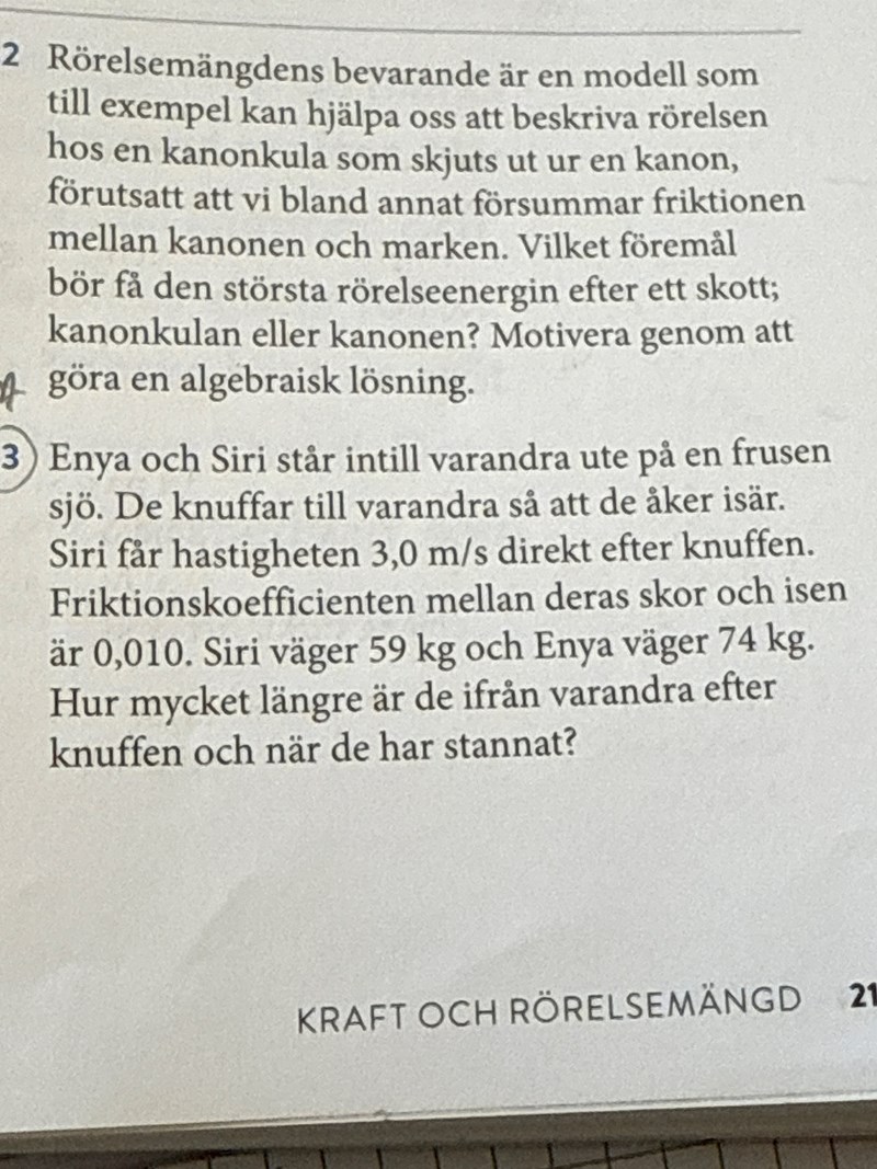 Kan du räkna ut hur stor hastighet Enya får? Tänk på att hon åker åt motsatt håll som Siri och därmed får en negativ hastighet.