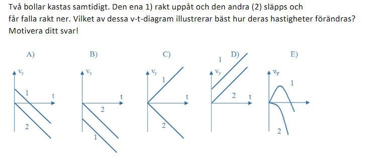 Den sten som man bara släpper kommer vara 0 från början och sedan öka i hastighet negativ riktning (neråt)