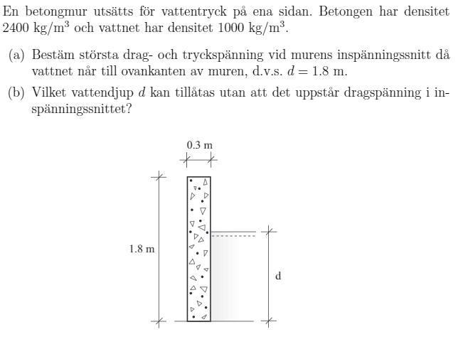 Glöm inte när du tar b-uppgiften att spänningen kommer bli en funktion av djupet eftersom momentet är en funktion av djupet.