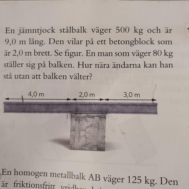 Jag förstår vad du säger, men om de verkligen vill ha det svaret så det låter för mig som en missledande uppgift. Om normalkraften bara appliceras i den vältande punkten, ja, då betyder det att balken redan håller på att välta. Men det känns fel att göra det antagandet.
