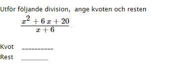 Smutsmunnen skrev:Jultommi skrev:Smutsmunnen skrev:Du kan dubbelkolla med (x+6)*x +20 = x^2+6x+20.