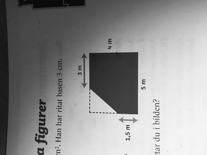Om du tänker dig rektangeln innan hörnet klipps bort så har den sidlängderna 4 m och 5 m.