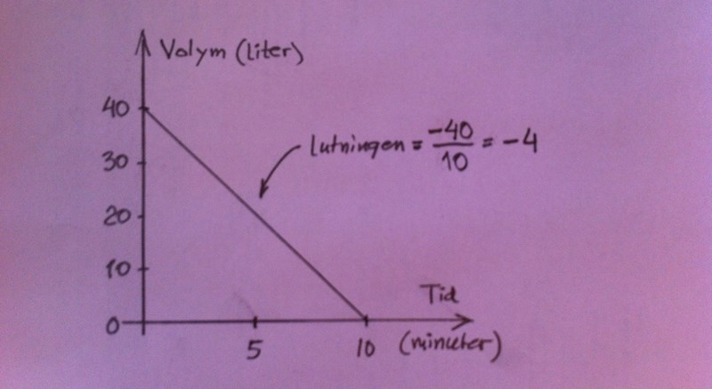Den graf du ska rita blir därför en rät linje som börjar på 40 liter vid tiden 0 minuter