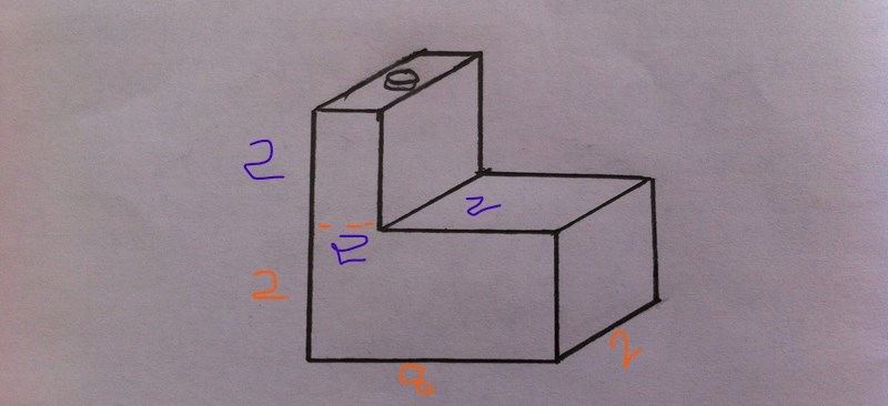 Lägg bara till att bensintanken har en tredje dimension och att den dimensionen i din skiss är samma