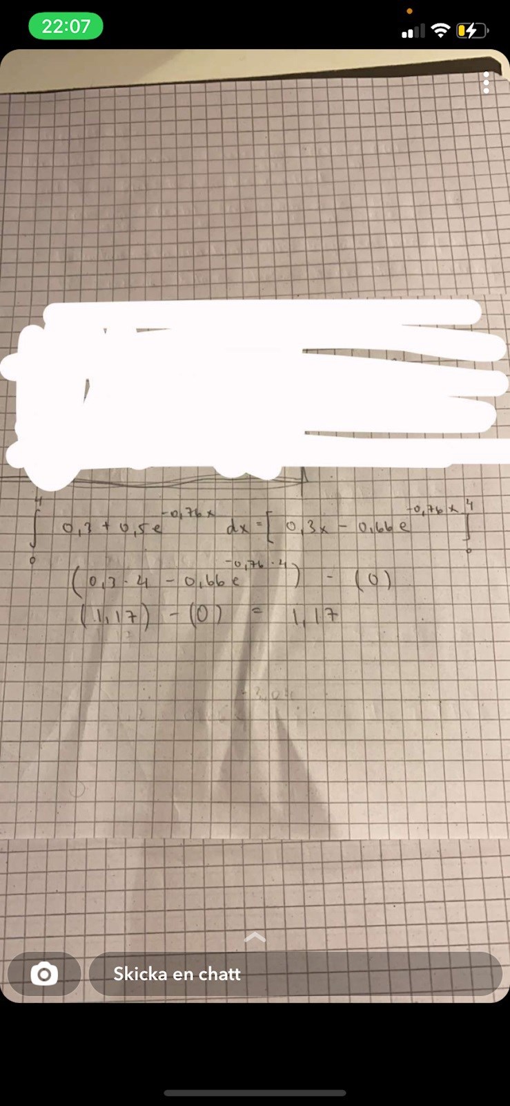 Programmeraren skrev:Tänk efter vad de frågar efter och vad x är. Du har satt in gränserna x=0 och x=4. Då har du räknat ut den totala förbrukningen för de 4 första milen (dock ser det ut som att du räknat fel, värdet för undre gränsen verkar inte bli 0).