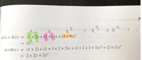 Är det rätt tänkt när jag tänker: Z_3(x) = {0,1,2} dvs då ska grad 0 med, grad 1 ska med och grad 2 ska med, dvs alla förutom x^2 ???? så svaret borde bli (1+2)+(2+1)x eller?? Varför elimineras just dom? Hoppas ngn fattar vad jag menar :$