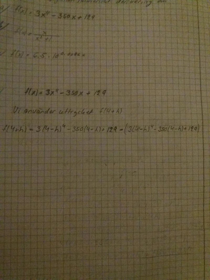 • Differenskvot framåt: f'(4)f(4+h)-f(4)h