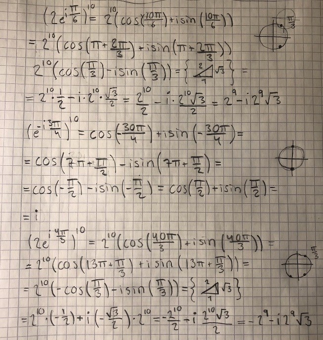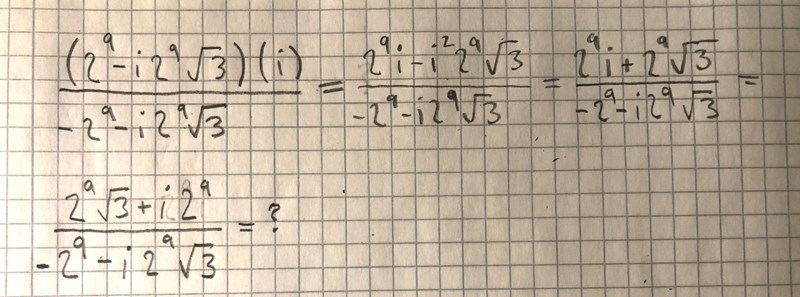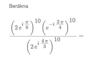 Det ärnog enklare att behålla talen på exponentiell polär form och använda de vanliga potenslagarna för att förenkla uttrycket innan du går över till rektangulär form.