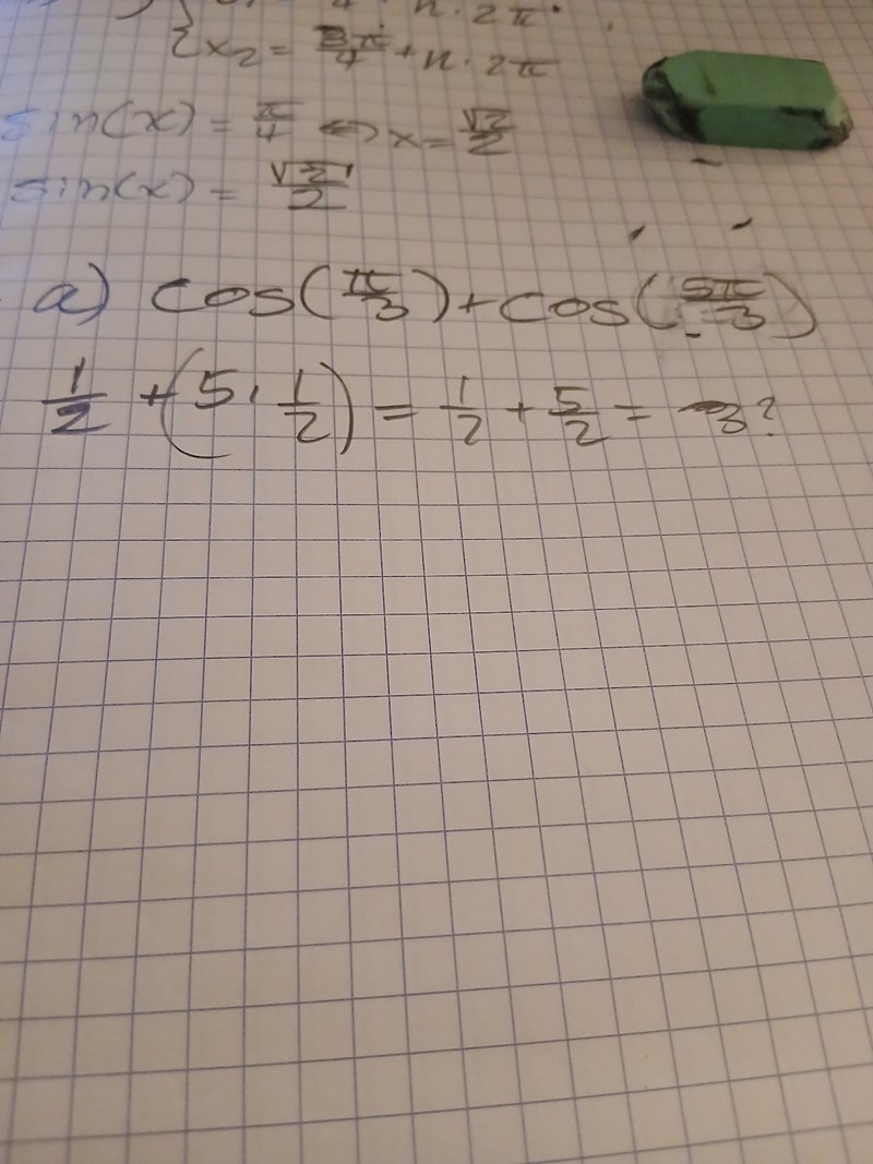 Enhetscirkeln kommer nästan alltid till ens räddning. Vilken vinkel är ? Vad är cosinus av den vinkeln?