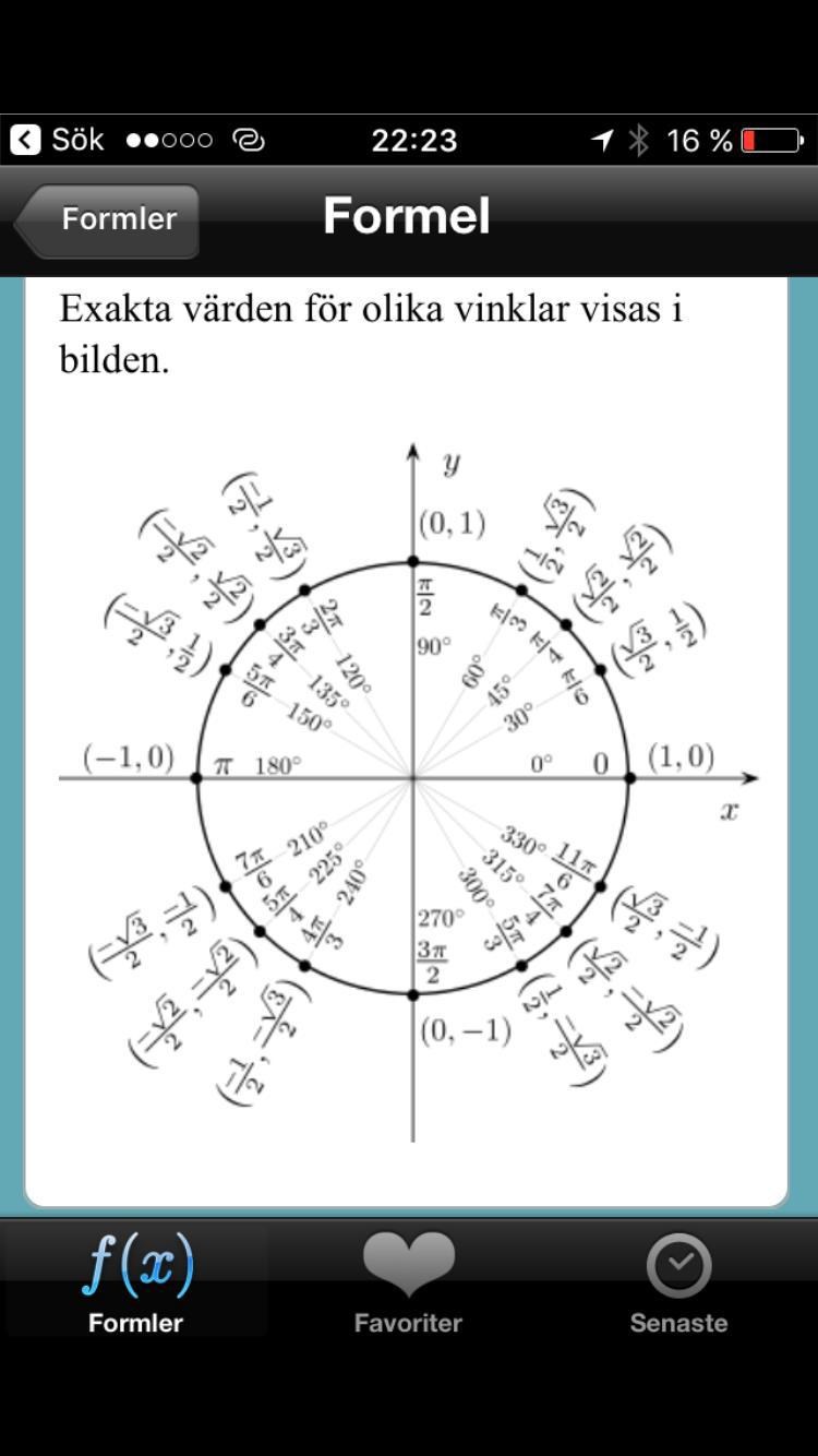 (Google "Exakta värden för olika vinklar visas i enhetscirkeln")