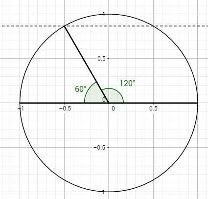 där Enhetscirkeln visar att talet cos120=-0.5 \cos 120 = -0.5 .