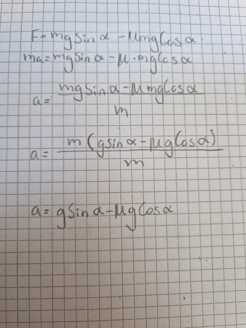 Förstår inte hur man beräknar acceleration på ett objekt på lutande plan