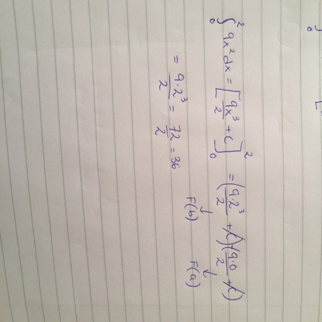 Om F(x) = (9*x^3)/3 + C så blir F(2) = (9*2^3)/3 + C = (9*8)/3 + C = 72/3 + C = 24 + C