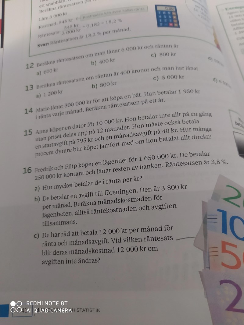 Jarojaran skrev:Blir inte räntan 94 400 för 8200 x 12=94 400 vad ska man göra sedan?